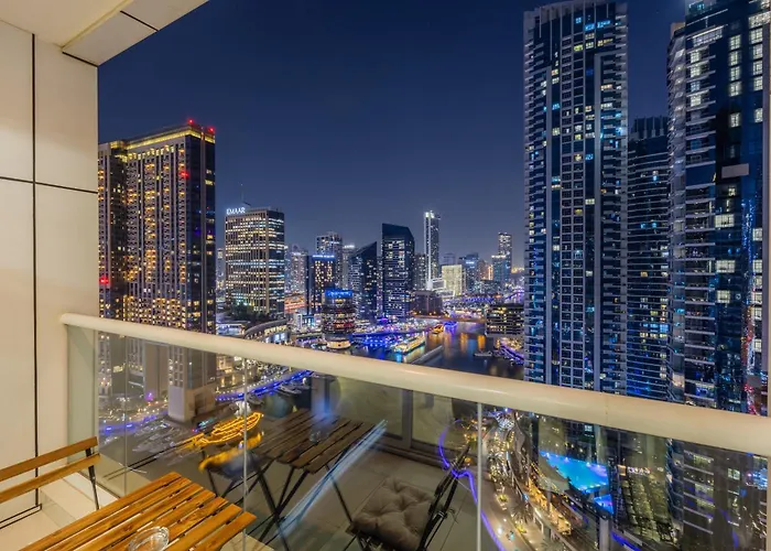 Featuring views of the sea, the 114 m² Shoresinn - Luxe Waterfront In Heart Of Marina Dubai apartment is situated in the Beach & Coast district, approximately a 15-minute walk from the Dubai Marina Yacht Club. This spacious apartment with a patio is located a few steps from the Walk at JBR.